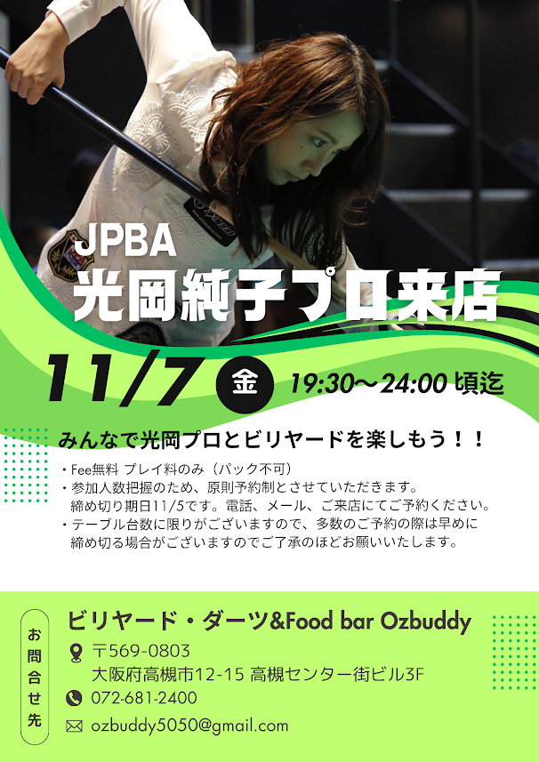 11月7日(金)、第3回光岡純子プロのプレイヤーデイ決定しました!